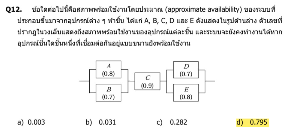 โจทย์ถามหา ค่าความพร้อมใช้งานโดยประมาณ (approximate availability) ของระบบที่ประกอบจากอุปกรณ์ A, B, C, D, E