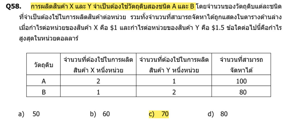 โจทย์เป็นการหากำไรสูงสุด (Linear Programming)