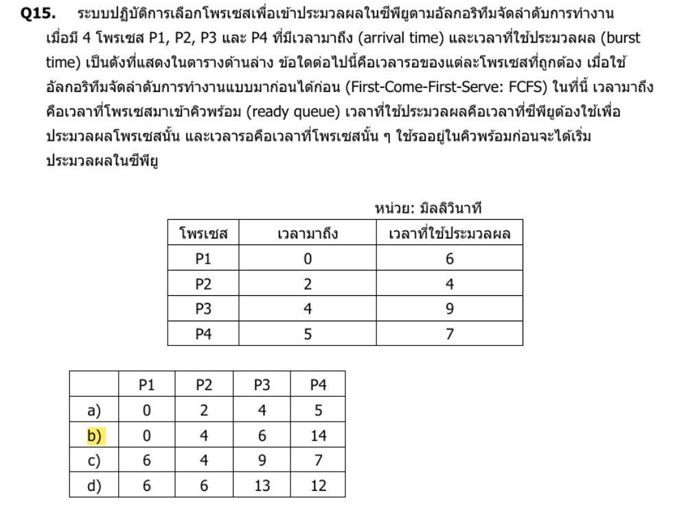 - P4 มาถึง 5 เริ่มที่ 19 ⇒ รอ 19−5 = 14