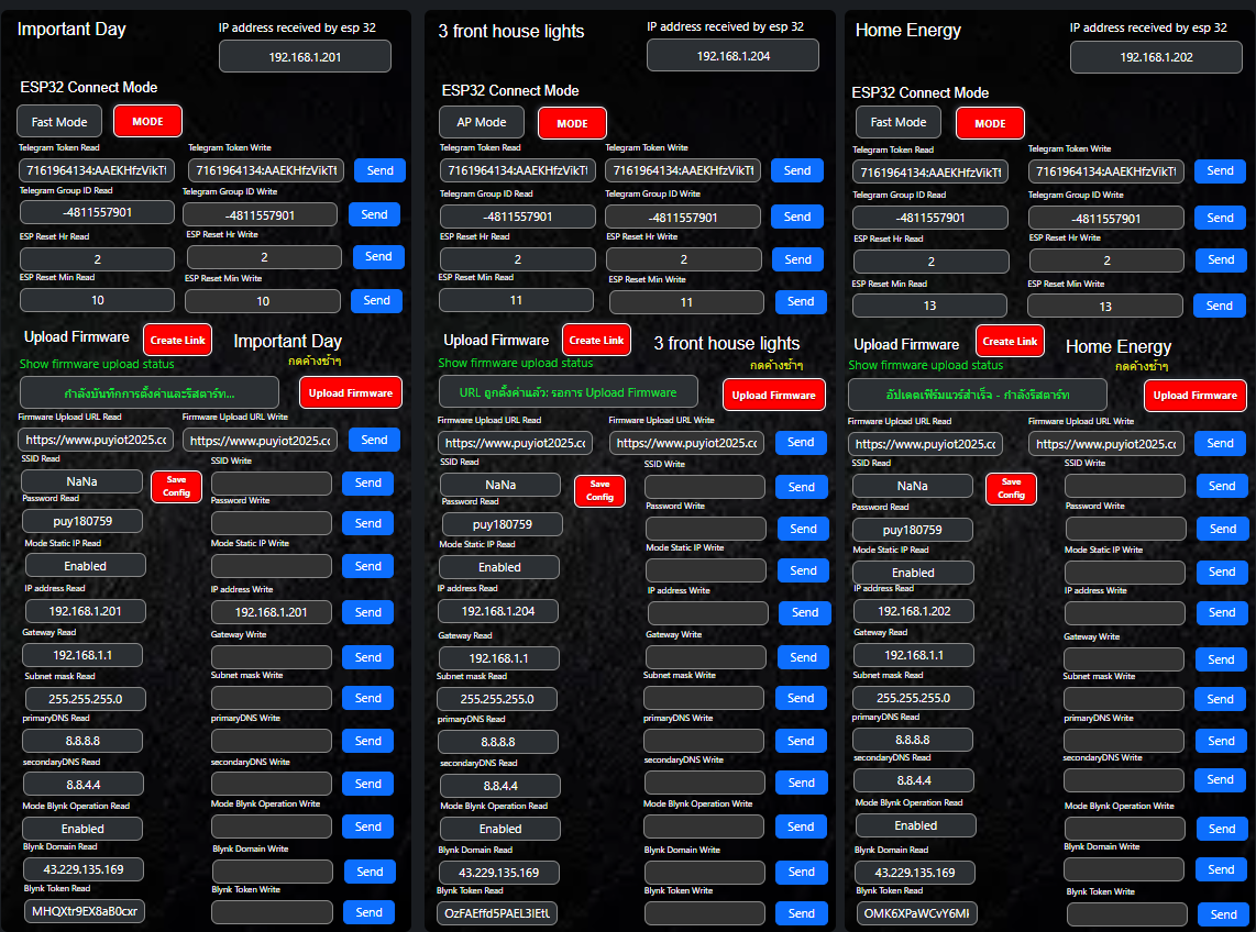 โดยปกติเราจะต้องเข้าหน้า Config IP ผ่านเว็บ Server เช่น iot web Config ที่อยู่ในวง WiFi เดียวกันใช่ไหมครับ แต่ถ้าเราใช้การประยุกต์กับ blynk ด้วยเว็บไซต์เราสามารถที่จะเปิดหน้าเว็บ Config นอกวง WiFi หรือที่ไหนก็ได้แล้วตั้งค่าผ่านเข้ามาทาง blynk ก็ใช้ได้เช่นกันส ามารถอัพโหลดเฟิร์มแวร์จากที่ไหนก็ได้มายัง esp 32 ที่เราต้องการผ่าน Blynk Server