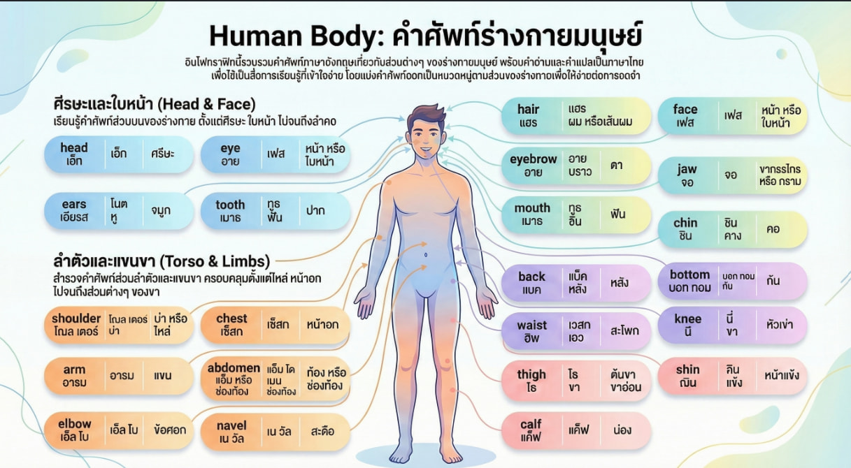 แจกกลุ่มคำศัพท์ Human Body ร่างกายของมนุษย์