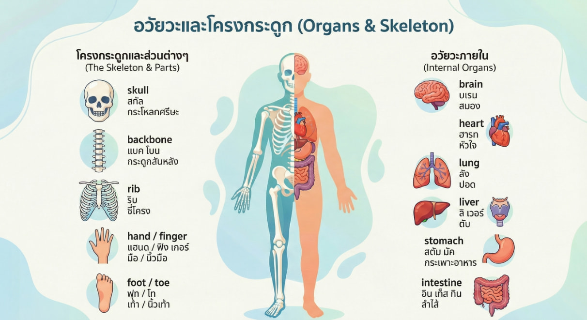 แจกกลุ่มคำศัพท์ Organs and skeleton อวัยวะและโครงกระดูก