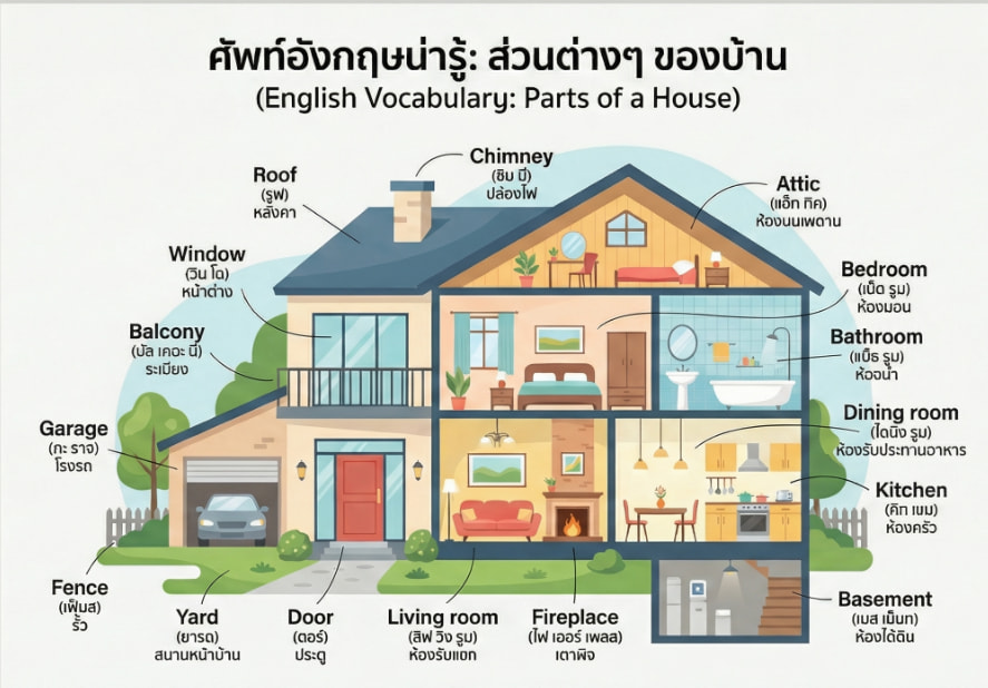 แจกกลุ่มคำศัพท์ part of the house โครงสร้างบ้านเรือน ![]()