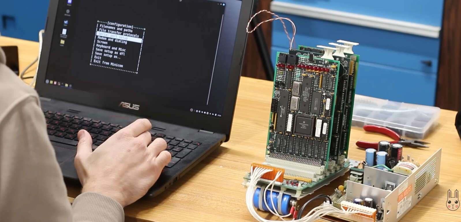 เมื่อจ่ายพลังงานให้กับเครื่อง ไฟ LED ต่างๆ ก็สว่างขึ้น และมีสัญญาณซ้ำๆ ส่งออกมาจากพอร์ตอนุกรมหนึ่ง พอร์ตเหล่านี้ใช้มาตรฐาน RS-485 ซึ่งเป็นที่นิยมในระบบอุตสาหกรรม อย่างไรก็ตาม คอมพิวเตอร์ยังไม่ตอบสนองต่อคำสั่งที่ส่งจากเทอร์มินัล ทำให้โปรโตคอลการสื่อสารยังคงเป็นปริศนา แต่หลังจาก Dave เผยแพร่วิดีโอการค้นพบนี้ ผู้คนมากมายในช่อง vintage-micros บน Discord ของ Usagi Electric ก็ได้เข้ามาให้ข้อมูลและคำแนะนำอันเป็นประโยชน์อย่างมหาศาล เพื่อช่วยคลี่คลายความลับและหวังที่จะทำให้คอมพิวเตอร์ควบคุมปั๊มน้ำมันเครื่องนี้กลับมา ‘สูบฉีด’ ได้อีกครั้ง